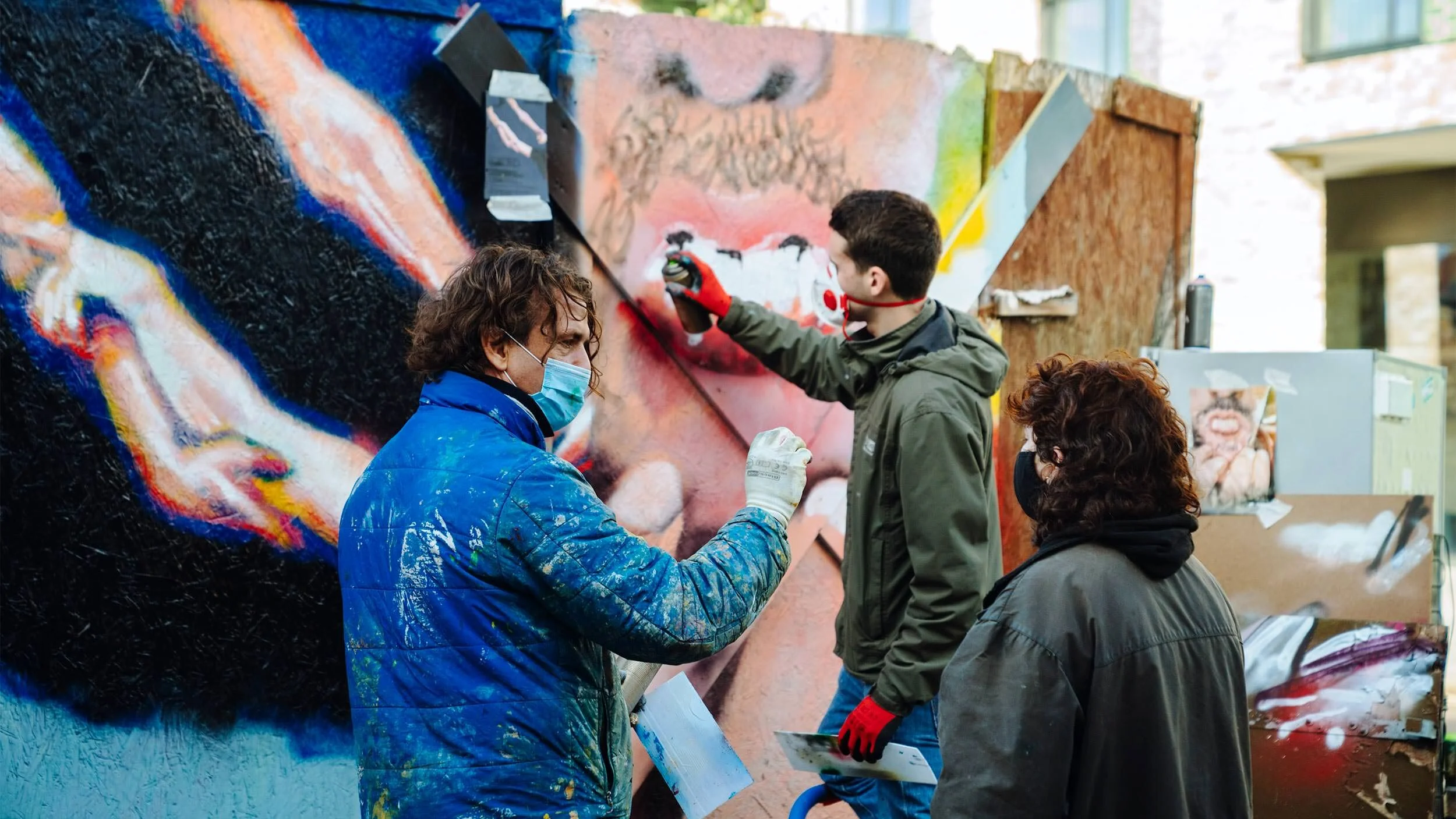 During each seven months long intensive course, the students learn a variety of skills with which they can initiate their own projects and follow through from beginning to end. Our focus is to transmit our knowledge in participation, engaging other groups in the creative process and delivering two highly impactful public facing murals at the end of the course.